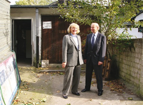 Company founders Günter and Margret Blase in front of their “double garage” from 1964
