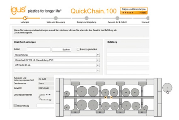 igus® presented the first energy chain made of plastic 43 years ago; today the company offers the largest range of plastic chains with the widest range of flexible cables in the world. To navigate through the large range, the customers can use an online tool to easily select their chain with cables and connectors and even calculate the service life. Today, igus® is a system provider in energy supply. The readychain® systems are offered as finished, custom-assembled units.