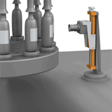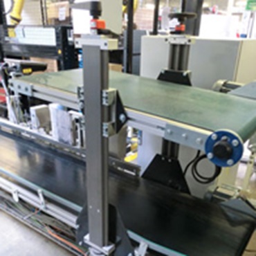 Application in the glass industry Format adjustment on conveyor for separation of bottles.