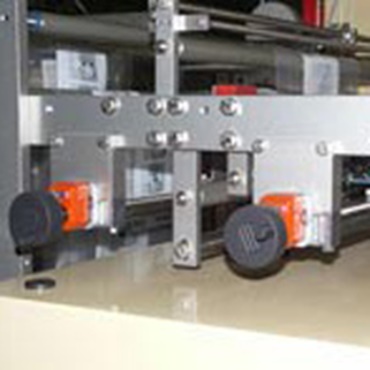 Format adjustment of the sensors for web edge detection and print mark recognition through drylin® SLW linear table solution with position indicator and hand wheel (convenient and reproducible positioning from outside)