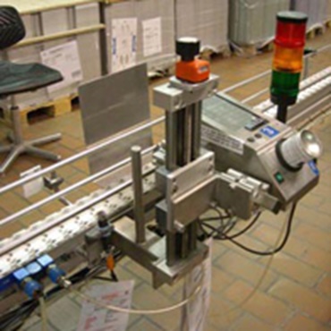 The drylin® spindle lift table with position indicator and handwheel is used in a coder to label cheese because of its freedom from lubricants.