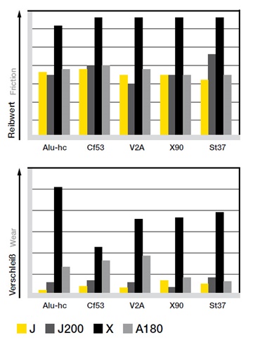Materials for any shaft material, superior specific wear