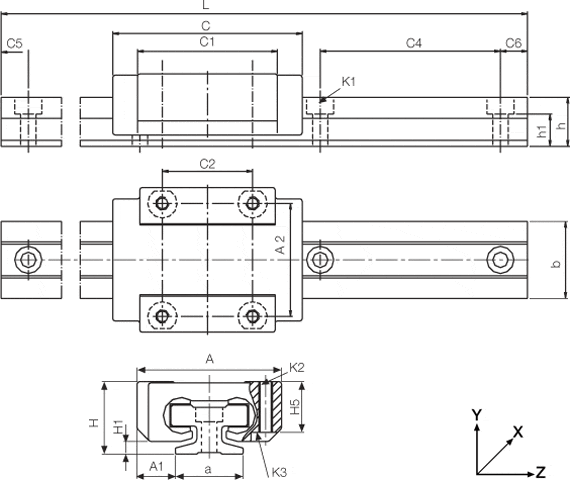 Dimensioned identical to low profile recirculating ball guide systems
